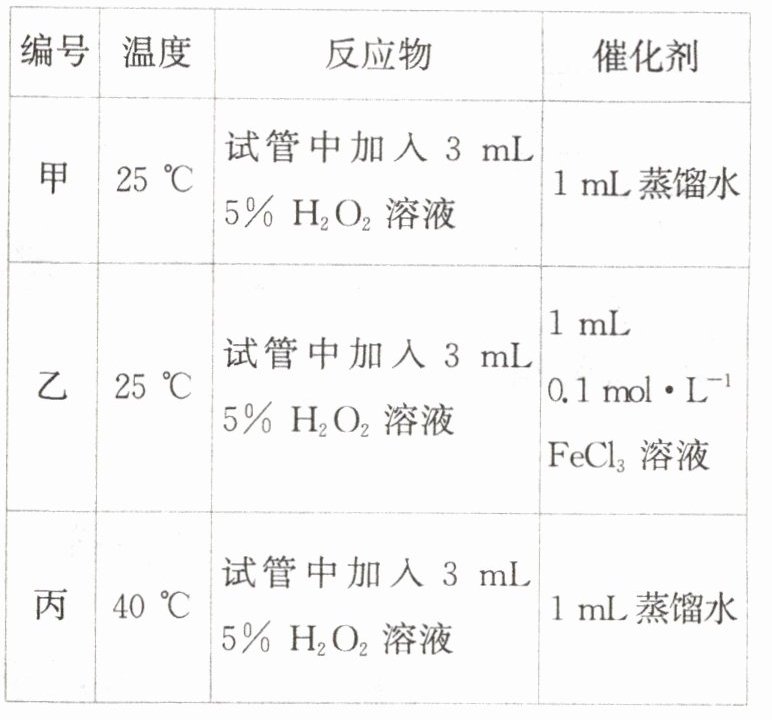 2.某实验小组学习化学反应速率后,联想到$H_{2}O_{2}$分解制备氧气,设计如下实验方案探究外界条件对反应速率的影响。