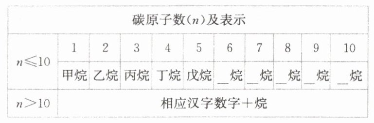 ①以烷烃分子中碳原子数命名,碳原子数(n)及表示如下: