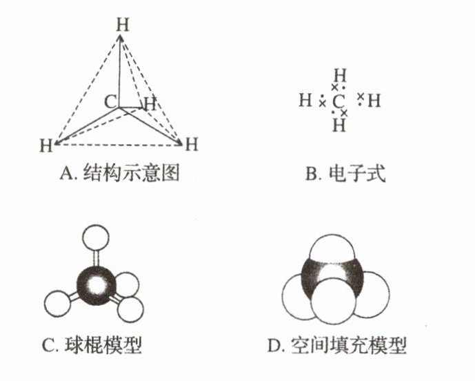 2.下列各图均能表示甲烷的分子结构,其中能反映其真实存在状况的是 ( )