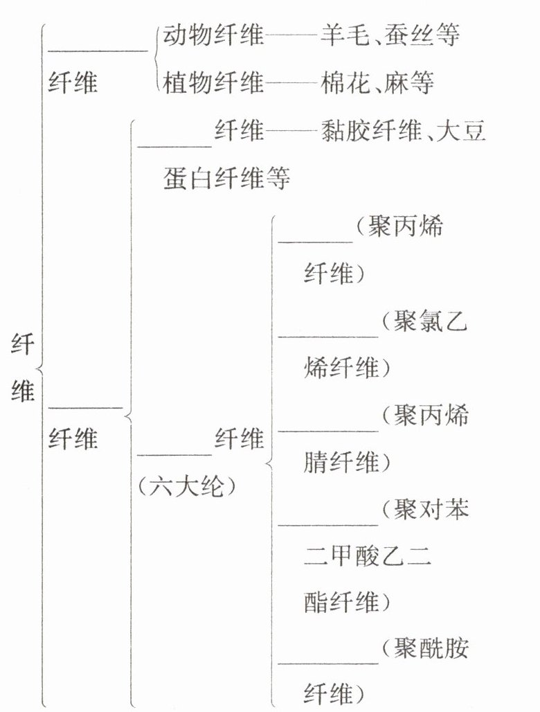(3)①天然 化学 再生 合成 丙纶 氯纶 腈纶 涤纶 锦纶、芳纶 ②高 好 ③衣料