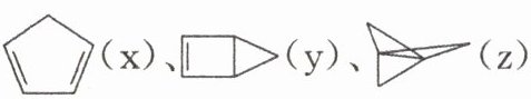 C [x的分子式为C₅H₆,对应的同分异构体可为环状烃,也可为链状烃,如H₃C—C≡C—CH═CH₂,则同分异构体不止y和z两种,A错误;y分子中有饱和碳原子,所有原子不可能处于同一平面,B错误;z的一氯代物有一种:
