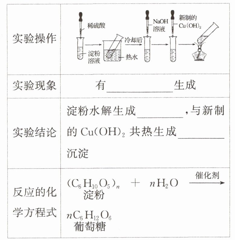 (5)为检验淀粉的水解产物,可向水解后的溶液中加入新制的Cu(OH)₂,加热,如没有砖红色沉淀,则没有葡萄糖生成 ( )