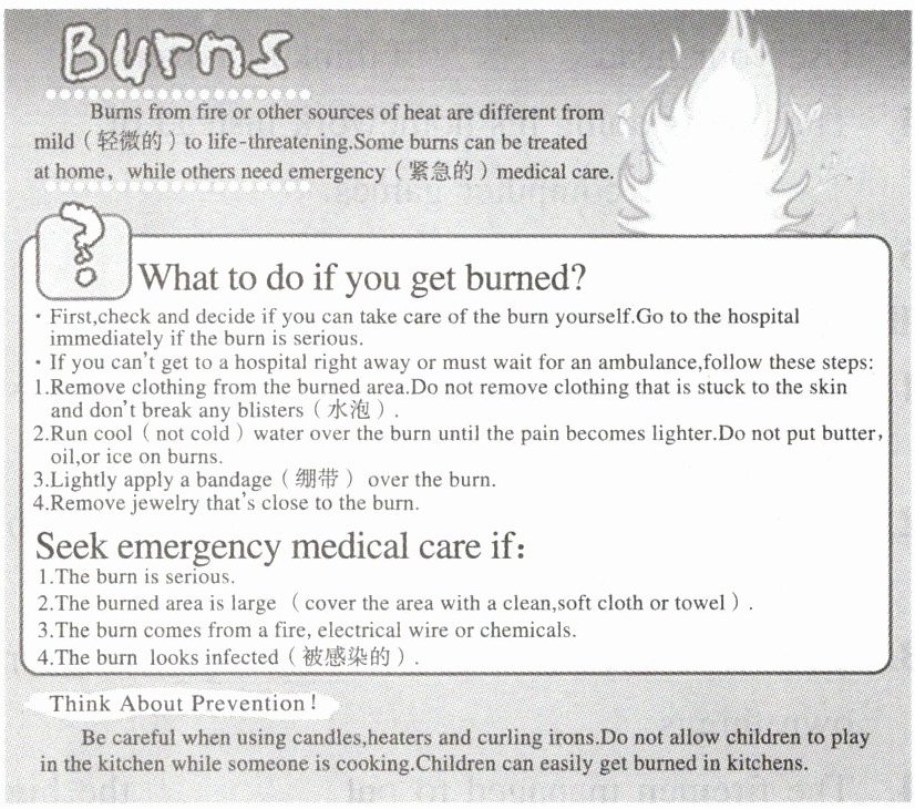 Ⅱ. 阅读理解【主题:人与社会 烧伤处理】