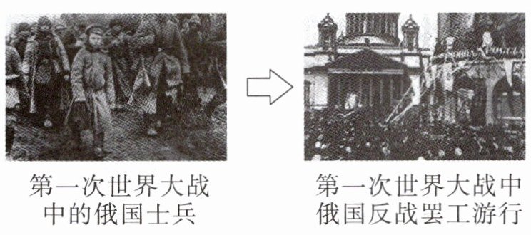 D 解析:根据材料并结合所学知识可知,在第一次世界大战中,俄国接连失利,国内各种社会矛盾激化,反对战争和要求社会变革的呼声越来越高,引发了俄国革命,D项正确;俄国革命的领导力量是工人阶级,士兵是支持力量,排除A项;1861年农奴制改革使俄国走上了发展资本主义的道路,排除B项;材料没有涉及俄国革命冲破世界帝国主义阵线,排除C项。故选D。