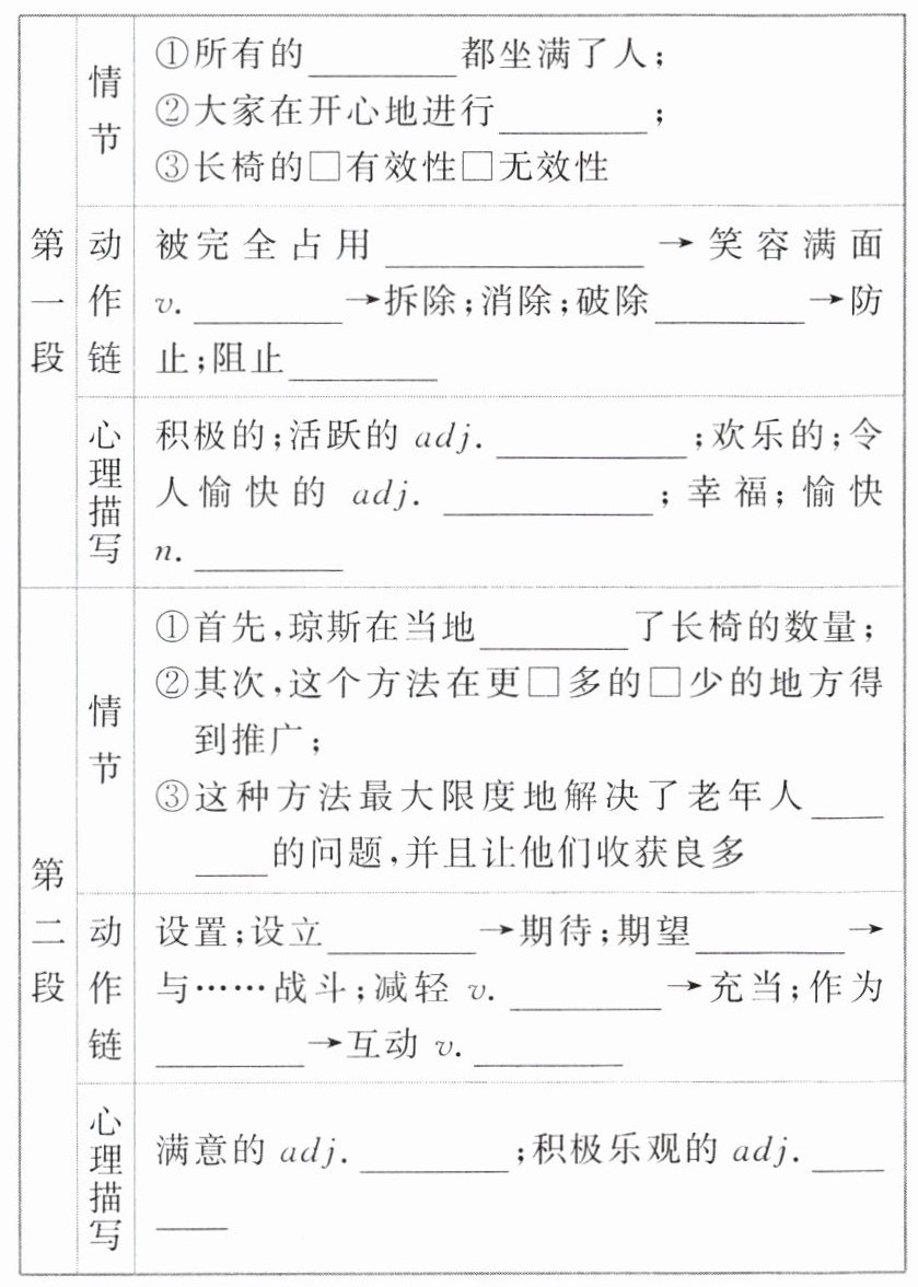 (二)①长椅;交流 ②有效性;多的 ③长椅;交流;骗子;孤独
