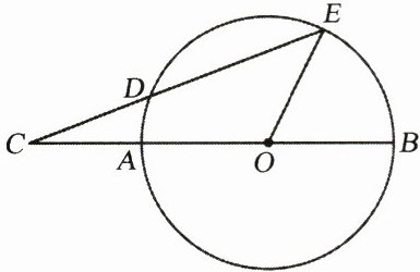 6. 如图,$AB是\odot O$的直径,$C是BA$延长线上一点,点$D在\odot O$上,且$CD = OA$,$CD的延长线交\odot O于点E$. 若$\angle C = 20^{\circ}$,求$\angle BOE$的度数.