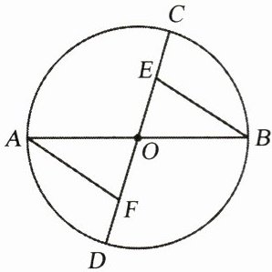 7. 如图,$AB$、$CD为\odot O$中两条直径,点$E$、$F在直径CD$上,且$CE = DF$.