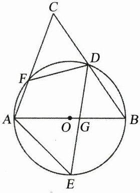 10. 如图,AB是⊙O的直径,D、E为⊙O上位于AB异侧的两点,连接BD,并延长至点C,使得CD= BD,连接AC交⊙O于点F,连接AE、DE、DF.