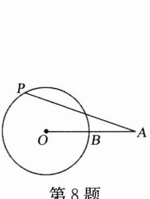 8. 如图,已知线段$OA交\odot O于点B$,且$OB= AB$,$P是\odot O$上的一个动点,那么$∠OAP$的最大值是 (