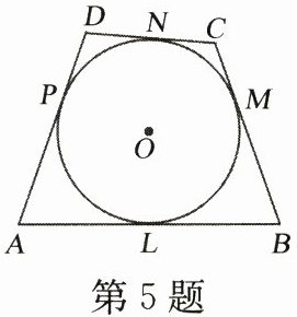 5. 如图,四边形$ABCD的边AB$、$BC$、$CD$、$DA和\odot O分别切于点L$、$M$、$N$、$P$,且$AB = 10cm$,$CD = 5cm$,则四边形$ABCD$周长为____