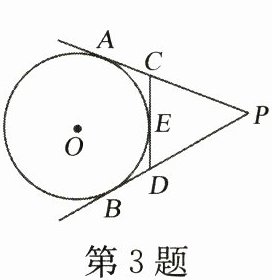 3. 如图,$P为\odot O$外一点,$PA$、$PB分别切\odot O于点A$、$B$,$CD切\odot O于点E且分别交PA$、$PB于点C$、$D$,若$\triangle PCD的周长为8$,则$PA$的长为(