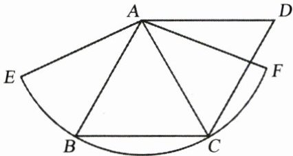 10. 如图,已知菱形$ABCD的边长为1.5cm$,$B$、$C两点在扇形AEF的\overset{\frown}{EF}$上,求$\overset{\frown}{BC}的长度及扇形ABC$的面积.