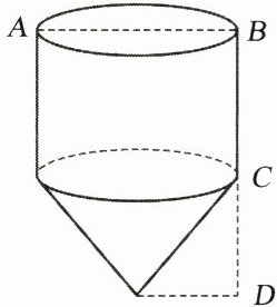 6. “赶陀螺”是一项深受人们喜爱的运动,如图是一个陀螺的立体结构图.已知底面圆的直径 $ AB = 8 \text{ cm} $,圆柱的高 $ BC = 6 \text{ cm} $,圆锥的高 $ CD = 3 \text{ cm} $,求这个陀螺的表面积.