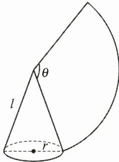 5. 如图,沿一条母线将圆锥侧面剪开并展平,得到一个扇形,若圆锥的底面圆的半径 $ r = 4 $,扇形的圆心角 $ \theta = 120^{\circ} $,则该圆锥母线 $ l $ 的长为 ______