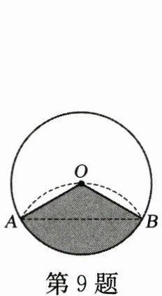 9. 如图,将半径为 $ 3 \text{ cm} $ 的圆形纸片沿 $ AB $ 折叠后,圆弧恰好能经过圆心 $ O $,用图中阴影部分的扇形围成一个圆锥的侧面,则这个圆锥的高为 ______ $ \text{cm} $.