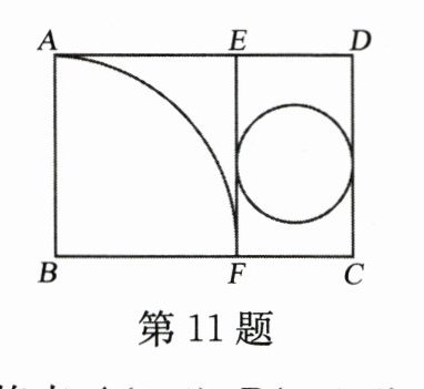 11. 如图,在矩形纸片 $ ABCD $ 中,$ AD = 6 \text{ cm} $,把它分割成正方形纸片 $ ABFE $ 和矩形纸片 $ EFCD $ 后,分别裁出扇形 $ ABP $ 和半径最大的圆,恰好能作为一个圆锥的侧面和底面,则圆锥的侧面积为 ______ $ \text{cm}^2 $.