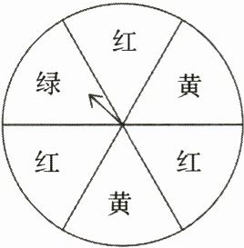 5. 如图是一个可以自由转动的转盘,转盘分成6个大小相同的扇形,颜色分为红、绿、黄三种颜色。指针的位置固定,转动的转盘停止后,其中的某个扇形会恰好停在指针所指的位置(指针指向两个扇形的交线时,当作指向右边的扇形)。转动一次转盘后,指针指向______
