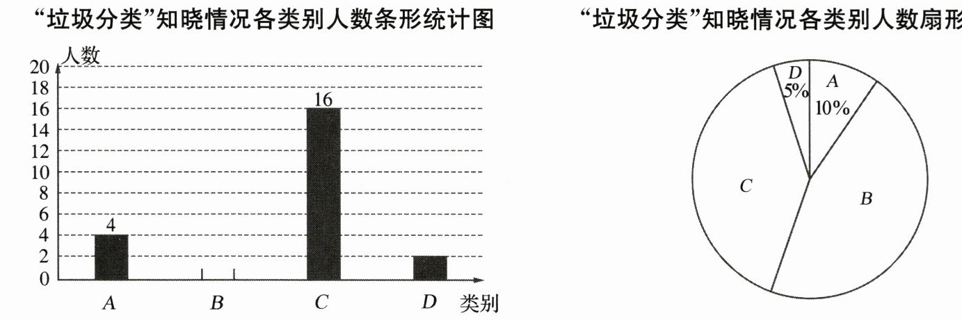 解:B类学生数为40 - 4 - 16 - 2 = 18(人),补全条形统计图略