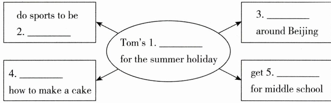 五、听录音,完成思维导图,每空一词。(每小题2分,共10分)