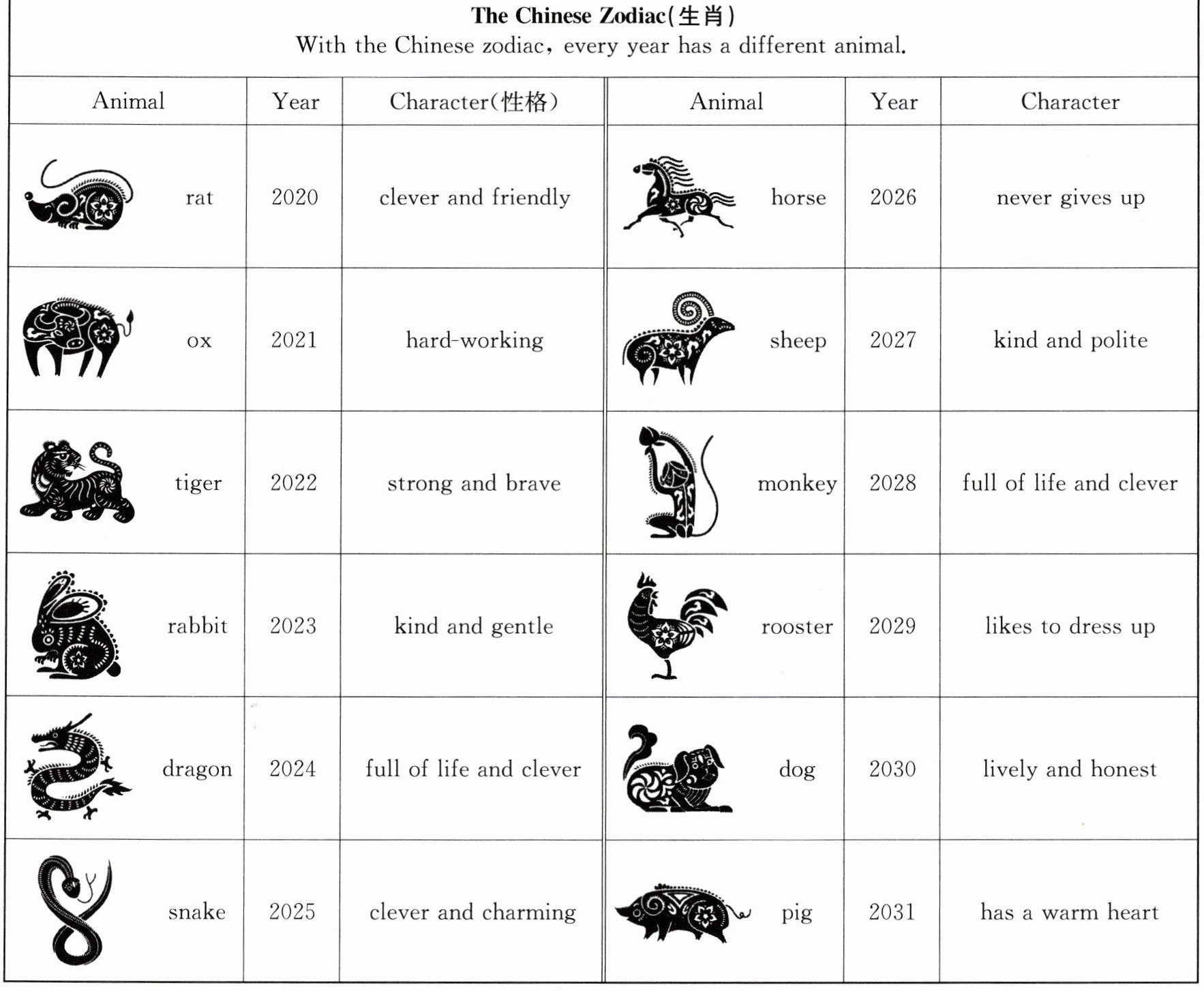 ( )1. How many kinds of animals are there in the Chinese zodiac?