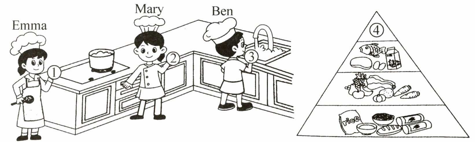 四、听录音,将图片放入合适的位置。(每小题 1 分,共 4 分)