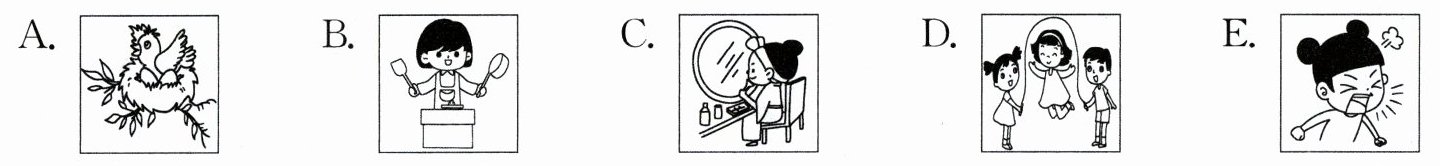 Ⅰ. 根据《跟上兔子》分级绘本六年级第二季 When I Was a Little Girl 的内容,给下列句子匹配正确的图片。