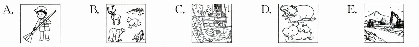 Ⅱ. 根据《朗文分级阅读8》的内容,给下列句子匹配正确的图片。
