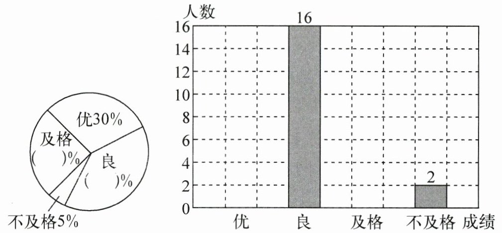 2. 下面是某校六(1)班上学期期末数学考试成绩统计图。先算一算,再把条形统计图和扇形统计图补充完整。(4 分)