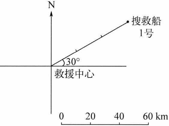 (1) 搜救船 1 号正在海面巡逻,它在“救援中心”的(