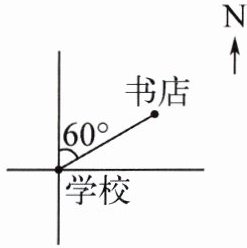 8. 如图,以学校为观测点,书店在学校的北偏东$60^{\circ }$方向的800 米处。若以书店为观测点,则学校在书店的(