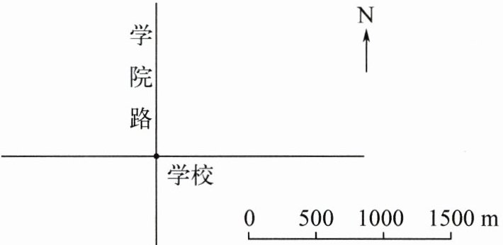 (2)学校西面 1 千米处是公园路,与学院路平行,请在图中画出公园路的位置。(1 分)
