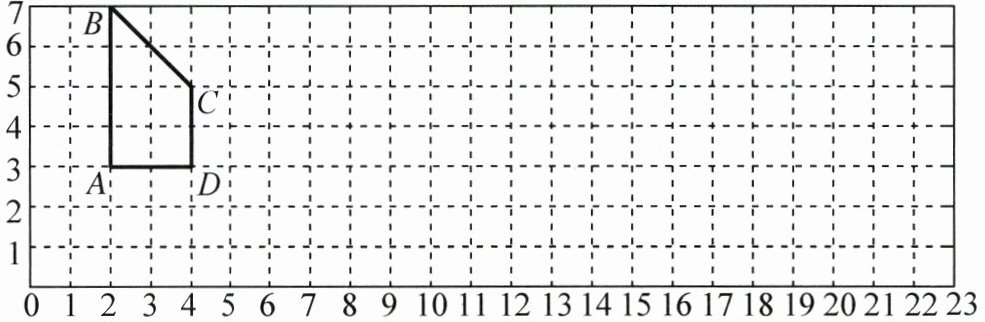 (3)画出原直角梯形按 1∶2 的比缩小后的图形,且要求缩小图右上角顶点的位置为$(22,4)$,缩小后的图形与原图形的面积比是( )。(2 分)