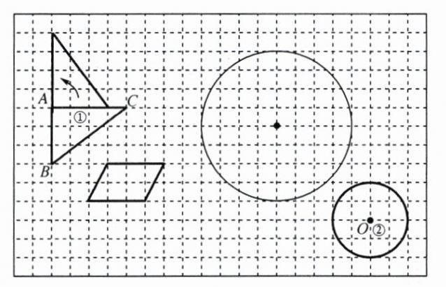 (1)将图①绕点A逆时针旋转$90^{\circ}$,画出旋转后的图形。(1分)