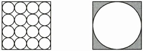 7. 如图,左边的图形中每个小圆的面积是π,右边的图形中涂色部分的面积为(