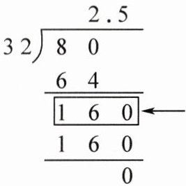 5. 李老师花80元买了32本练习本,每本练习本多少元?小萌用竖式计算出了结果,竖式方框内的“160”表示的是(