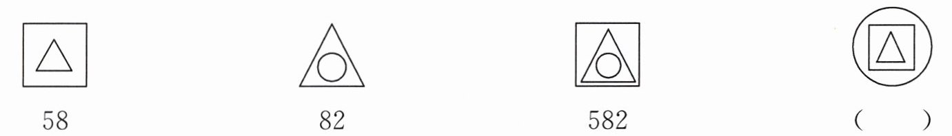 8. ○、△、□各表示一个数字,下面每组图形都是由这3个图形组合而成的。根据下图表示的数找出规律,填写第4组图形对应的数。