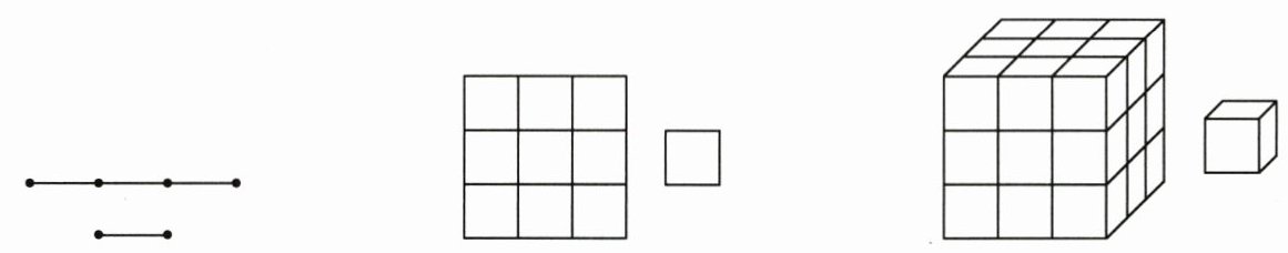D.每组图形中,都有一个图形和一个能测量该图形大小的单位