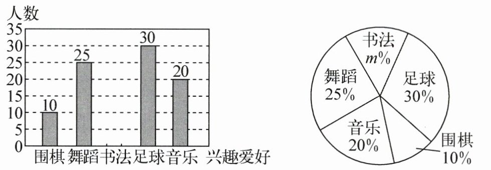 6. 某学校为组建校内课后服务小组,随机抽取了部分学生进行兴趣爱好的调查。将收集的数据整理并绘制成下列两幅统计图,请根据图中的信息,回答下列问题。