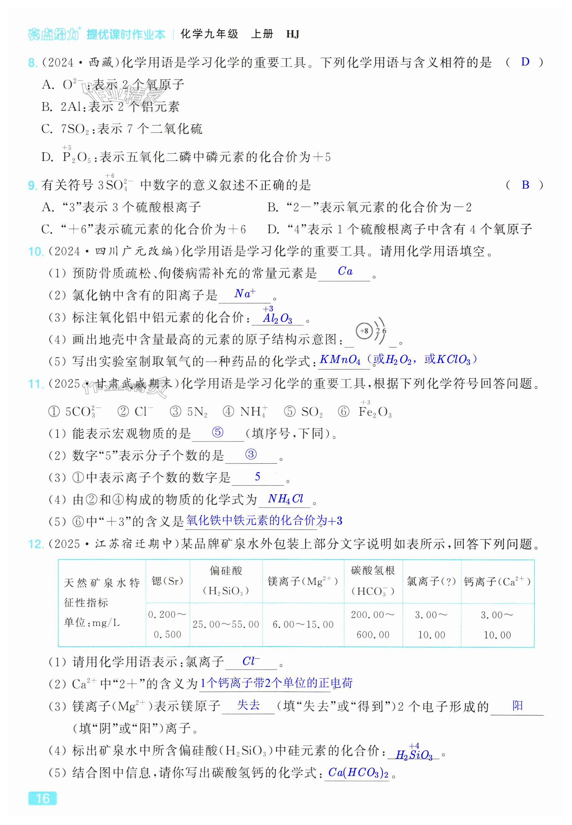 注:目前有些书本章节名称可能整理的还不是很完善,但都是按照顺序排列的,请同学们按照顺序仔细查找。练习册 2025年亮点给力提优课时作业本九年级化学上册沪教版 答案主要是用来给同学们做完题方便对答案用的,请勿直接抄袭。