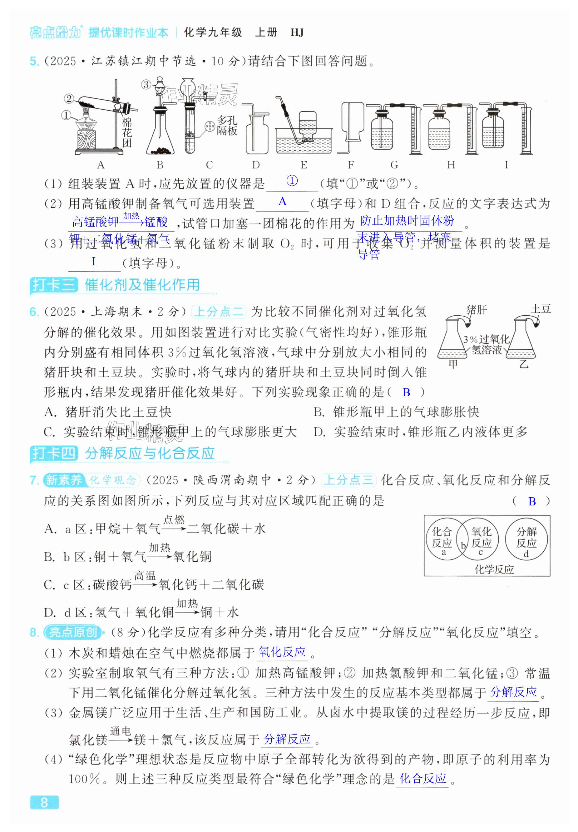 注:目前有些书本章节名称可能整理的还不是很完善,但都是按照顺序排列的,请同学们按照顺序仔细查找。练习册 2025年亮点给力提优课时作业本九年级化学上册沪教版 答案主要是用来给同学们做完题方便对答案用的,请勿直接抄袭。