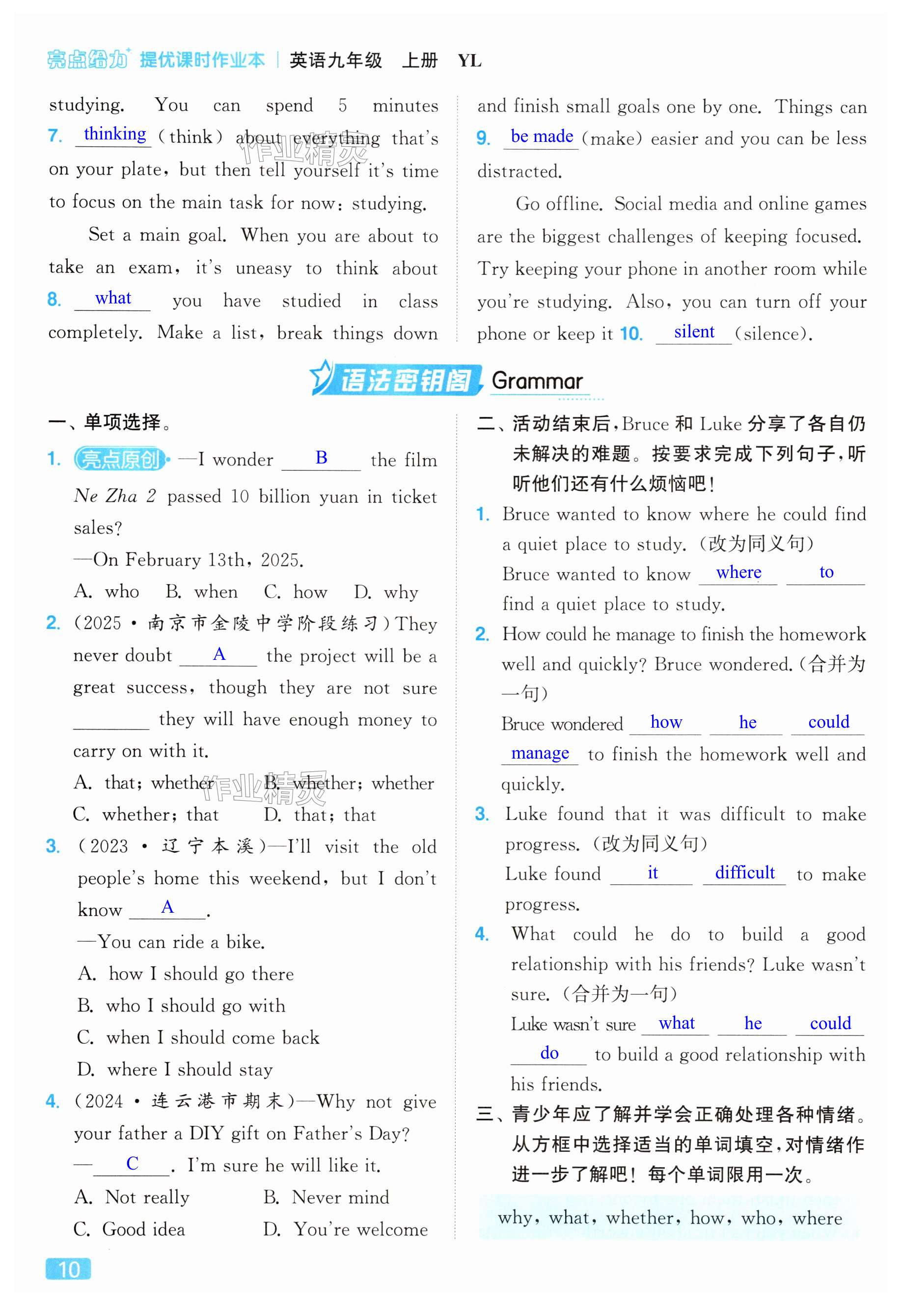 注:目前有些书本章节名称可能整理的还不是很完善,但都是按照顺序排列的,请同学们按照顺序仔细查找。练习册 2025年亮点给力提优课时作业本九年级英语上册译林版 答案主要是用来给同学们做完题方便对答案用的,请勿直接抄袭。