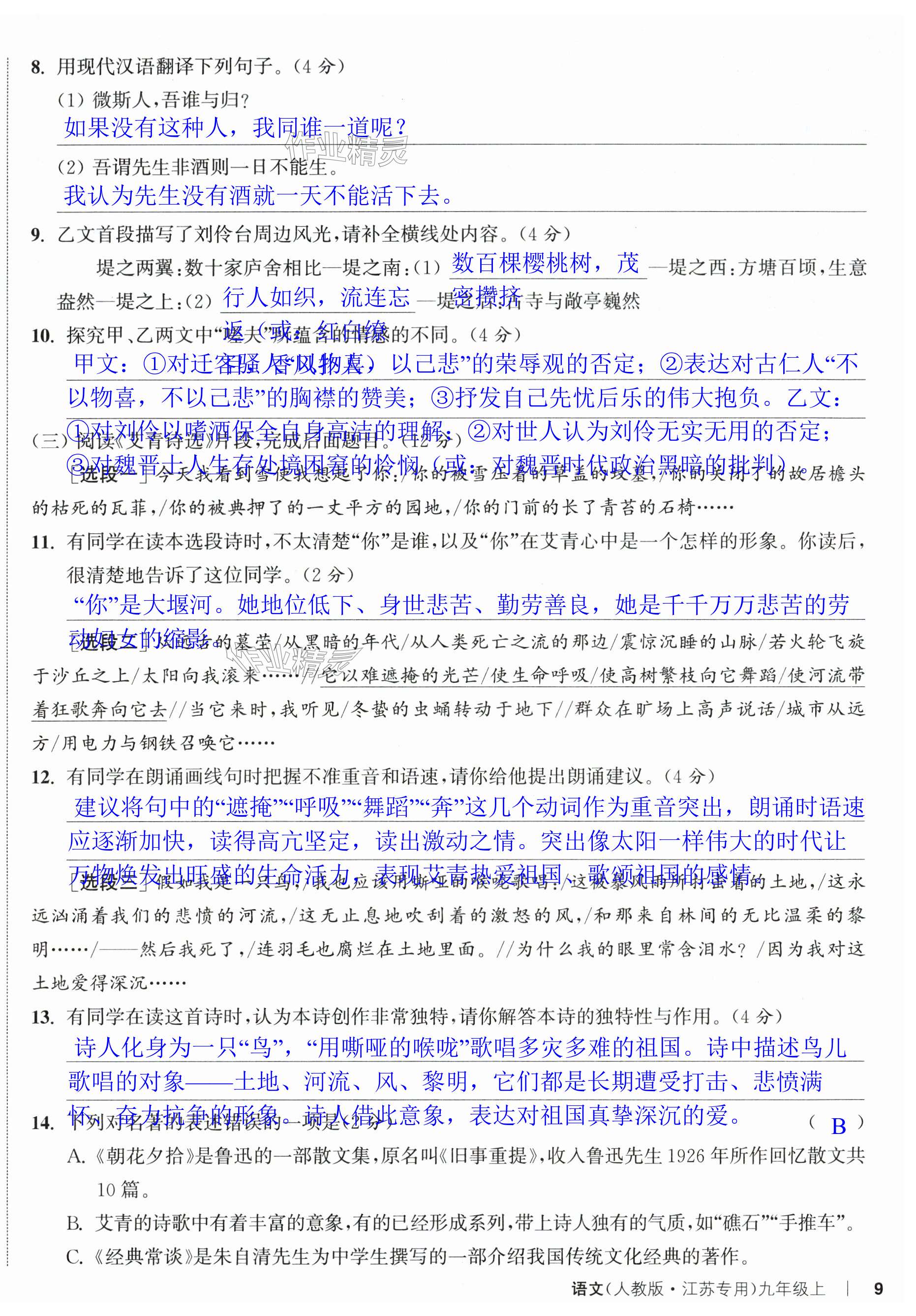 注:目前有些书本章节名称可能整理的还不是很完善,但都是按照顺序排列的,请同学们按照顺序仔细查找。练习册 2025年通城学典课时作业本九年级语文上册人教版江苏专版 答案主要是用来给同学们做完题方便对答案用的,请勿直接抄袭。