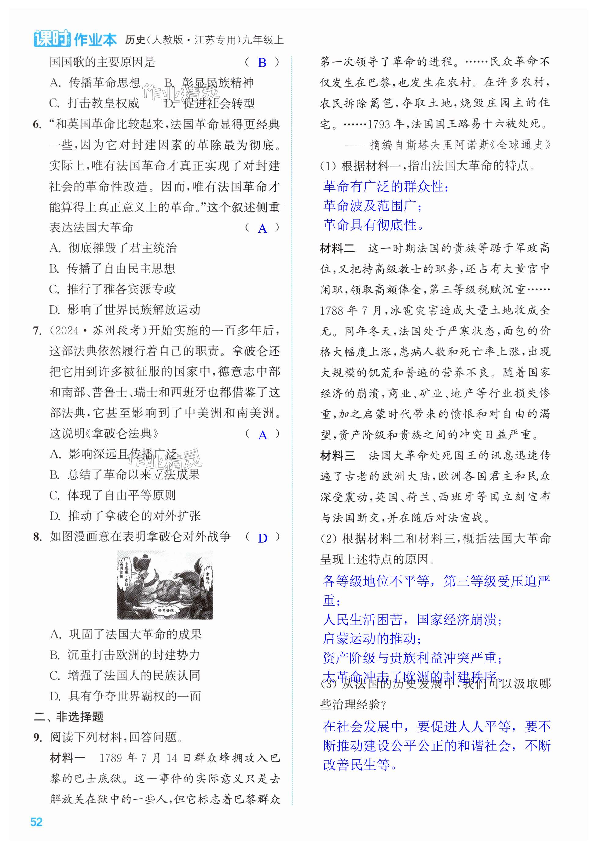 2025年通城学典课时作业本九年级历史上册人教版江苏专版