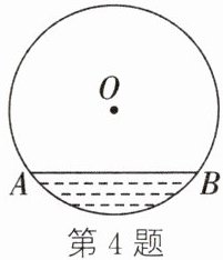 4. (新情境·现实生活)(2023·永州)如图,$\odot O$是一个盛有水的容器的横截面,$\odot O$的半径为$10\ cm$,水的最深处到水面$AB$的距离为$4\ \text{cm$,则水面$AB$的宽度为