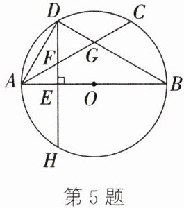 5. (2024·遂宁改编)如图,$AB$是$\odot O$的直径,$AC$是$\odot O$的弦,$D$是$\overset{\frown}{AC}$的中点,$DE\bot AB$于点$E$,交$AC$于点$F$,交$\odot O$于点$H$,$DB$交$AC$于点$G$,连接$AD$.