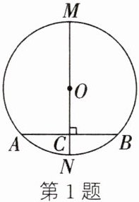 1. 如图,$AB$是$\odot O$的弦,直径$MN\bot AB$,垂足为$C$,则下列结论不一定成立的是 (