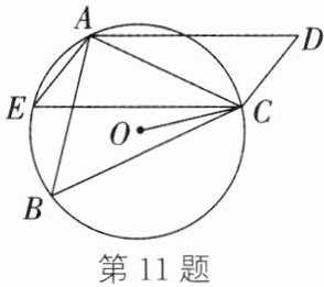 11. 如图,在四边形ABCD中,$AD=BC,∠B=∠D$,AD不平行于BC,过点C作$CE// AD$,交$△ABC$的外接圆$\odot O$于点E,连接AE.