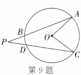 9. 如图,AB、CD是$\odot O$的弦,延长AB、CD相交于点P.若$∠P=30^{\circ },∠AOC=80^{\circ }$,则$\widehat {BD}$的度数是