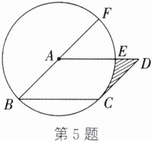 5. 如图, 在 $□ ABCD$ 中, 以点 $A$ 为圆心、$AB$ 为半径的圆恰好与 $CD$ 相切于点 $C$, 交 $AD$ 于点 $E$, 延长 $BA$, 交 $\odot A$ 于点 $F$. 若 $\overgroup{EF}$ 的长为 $\frac{\pi}{2}$, 求图中阴影部分的面积.