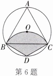 6. (2024·河南)如图, $\odot O$ 是边长为 $4\sqrt{3}$ 的等边三角形 $ABC$ 的外接圆, $D$ 是 $\overgroup{BC}$ 的中点, 连接 $BD$、$CD$. 以点 $D$ 为圆心, $BD$ 为半径在 $\odot O$ 内画弧, 则涂色部分的面积为 (